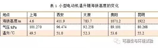 電工電子產(chǎn)品中有相當(dāng)一部分是散熱產(chǎn)品,如電機、變壓器等,這些產(chǎn)品在使用中要消耗一部分電能,使其變成熱能,使產(chǎn)品溫度升高,散熱產(chǎn)品的溫升隨大氣壓的降低而增加。表1列出了小型三向異步電動機溫升隨海拔高度的變化。